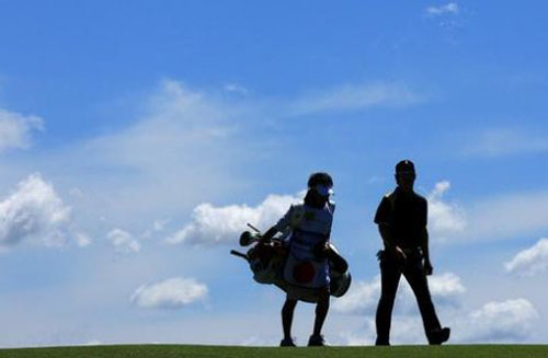 客:怎么不进? 球童:谁知道它为什么不进洞,有时候地球引力都不好使。