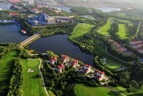 长春净月潭国家森林公园是国有4A级名胜景区,净月潭球会就坐落在景区内。80平方公里的森林种植于上世纪30年代,拥有长白落叶松、冷杉等30多个树种,平均树高达到30-40米。根据当地环境部门的测算,这里空气中的负离子含量是长春城区的400倍。