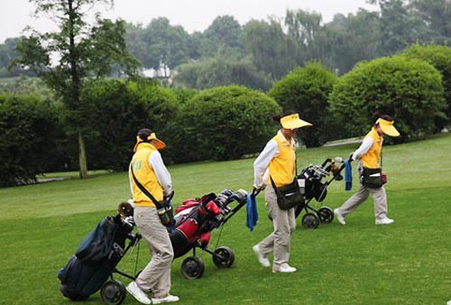 没有杆弟打球的日子不多,在欧美几乎没有杆弟,没辙。在国内,只有“非典”最猖獗的那些日子,我们不得不自己拉着球杆下场。所以,在国内如果没有杆弟简直就不象在打高尔夫球。