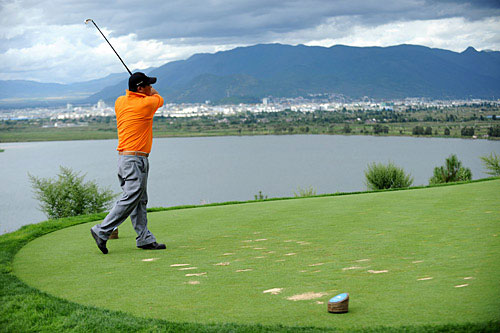 今生不打高尔夫 , 枉在红尘度春秋 ;