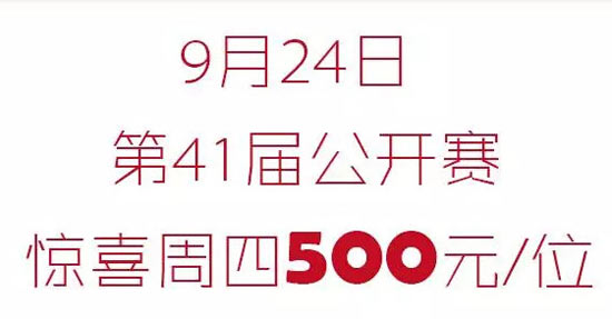 9.24 第41届公开赛,惊喜周四500元/位。