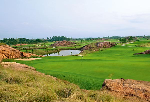 清远狮子湖乡村俱乐部所在的土地上虽然原来就有座球场,但除了保留个别一两洞的洞线外,球场完全是重新修建的。新的狮子湖集壮观的红岩、郁郁苍苍的松树、大小不一的传统沙坑以及狂野的长草元素于一身,是一座极具视觉享受和击球策略的林克斯风格球场。