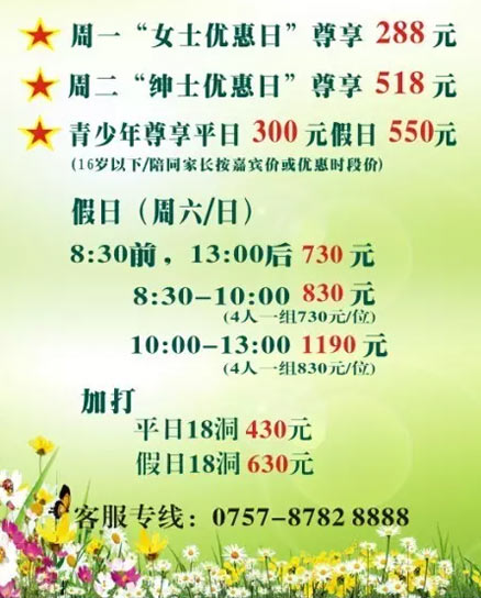 在这个春暖花开的季节,佛山保利云东海高尔夫球会与您约“惠”啦!
