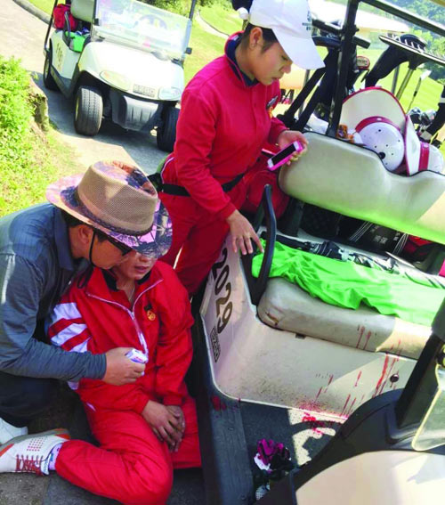 高尔夫球击中球童面部