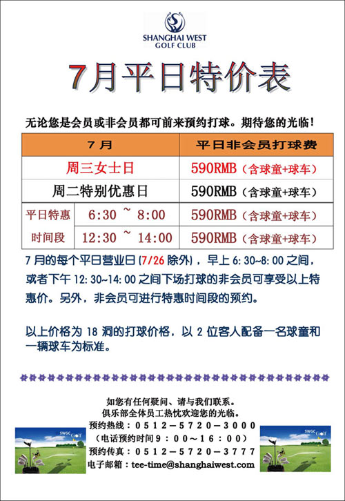 590元/18洞 上海光明高尔夫7月平日指定时间特惠