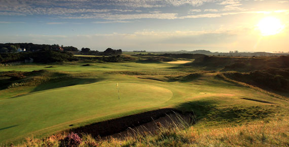 在紧实、沙基的球道旁闲庭信步,在黄色的金雀花丛和多诺赫荒无人烟的沙滩的全景之间漫游,汤姆-沃森形容的那种“在高尔夫球场上所感受到的最多的乐趣”,的确是对于这块场地的最完美形容。这块球场最著名的球洞就是短三杆洞8号洞“邮票”,这个球洞只有123码,得名是因为它是由深沙坑包围的微小绿地的组成,许多顶级球手都在这里“阴沟翻船”。看来要想征服这座球场,空有一身蛮力是绝对不行的。