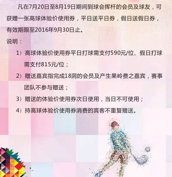 冲刺里约 为奥运加油 2016年8月高尔夫将重登奥运舞台,在里约奥运开幕之际,桃园高尔夫特推出--桃园聚惠迎奥运活动,优惠如下: