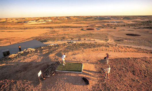 你一定想不到,你的球包在库伯配地也能派上用场。你在这里可以体验到全球最“奇葩”的球场——欧珀地高尔夫球场(Opal Fields GolfClub)。这座1975年问世的球场位于一片不毛之地上,全部18个球洞没有半根草,这里完全没有水和土地种草,因而是一个货真价实的“沙地球场”,或者称为“矿地球场”更准确些。为了防止沙子被风刮走,果岭部分的沙中混合了油脂。我想这就是站在火星上打球的味道!
