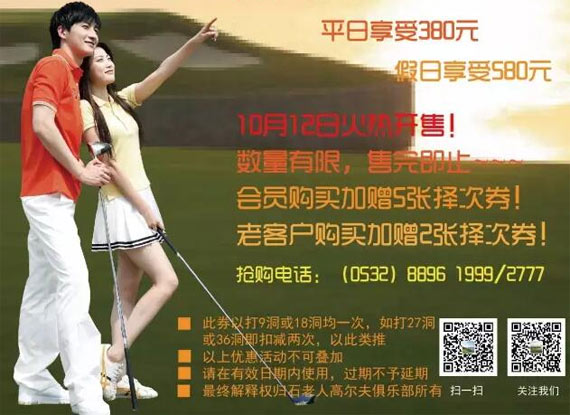 石老人高尔夫重磅推出 2016特惠“冬季择次券”助力您的高尔夫之旅!