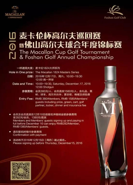 佛山高尔夫球会年度压轴盛事—2016麦卡伦杯高尔夫巡回赛暨佛山高尔夫球会年度锦标赛将于12月17日精彩开杆。