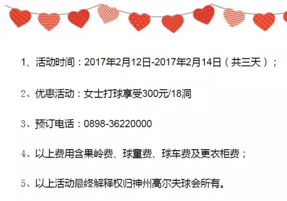 女士300元 海南神州高尔夫球会情人节特惠