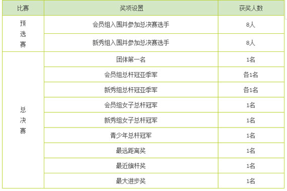 4、选拔赛每个练习场代表队选拔出会员组8名, 新秀组8名(男选手7名、女选手1名)代表队员参加总决赛。参赛队员必须出自选拔赛参赛队员名单。