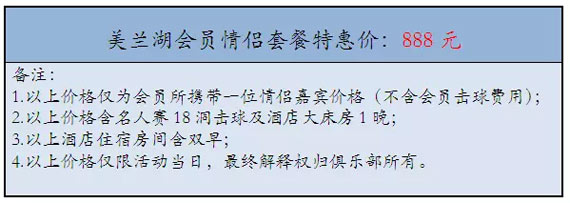 上海美兰湖高尔夫俱乐部联手美兰湖皇冠假日酒店针对情人节当天美兰湖会员携带情侣嘉宾推出特惠套餐活动,具体如下: