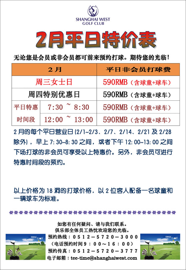 590元/18洞 上海光明高尔夫2月平日指定时间特惠