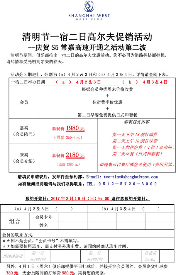 1980元/人 上海光明高尔夫清明节一宿二日促销