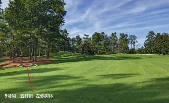 死亡之路:1999年,布兰多·钱布利在周六的比赛中以落后领先者2杆来到8号洞。在他称之为的“快闪”开球后,他的第二杆,在距洞杯250码处,“飞向左侧,进入了乔治亚松林”,让他陷入了困境。又打了一杆后,他仍未脱离炼狱。最后,他在记分卡上记下了双博基,7杆。正如钱布利所说的那样,“美国大师赛冠军与美国大师赛笨蛋之间,相距不过550码。”