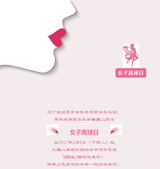 500元/位 常熟尚湖高尔夫“女子高球日”优惠