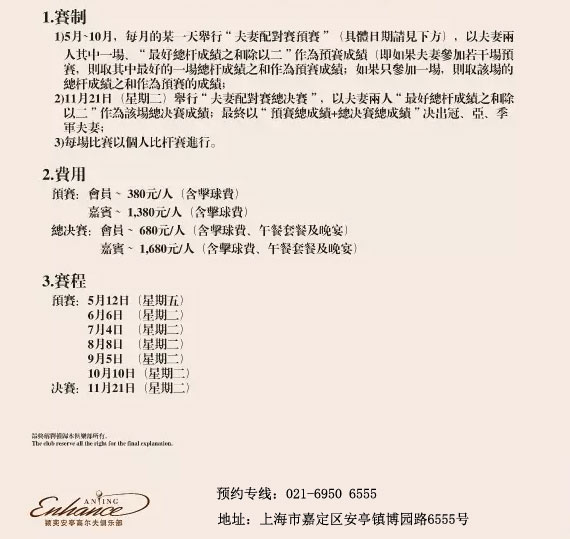 上海颖奕安亭高尔夫“2017夫妻配对赛”赛程