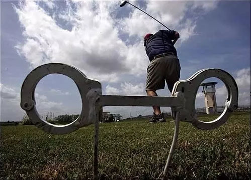 濒临美国密西西比河,路易斯安那州立监狱里面有座9洞球场,成立于2004年,是美国现存的唯一配套高尔夫球场的监狱。打球价只有10美元,周末也不过20美元,球车租赁费5美元,不设球童服务。访客必须提前48个小时预约,通过审核后才可进入。球场最特别之处在于是由监狱的牙医建造的,他自学的球场设计与建造,典狱长兼任球场的总经理。监狱的制度相当严格,囚犯不允许使用球场,有犯罪记录的人同样不允许在这里挥杆。进入这里的访客必须同意搜查车辆和随身物品,随行人员需要配合登记,需要填写下场打球的球友的出生日期及驾驶证等信息,并且不允许携带**、毒品、酒精和一切**。