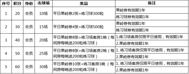 1、会员(平日会籍、个人终身会籍、度假会员、一年短期会籍、团体卡)来场击球18洞,积2分;非会员来场击球18洞,积1分。