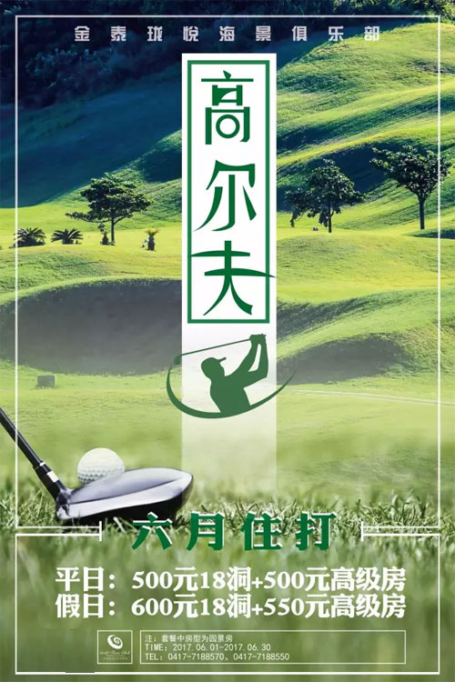 500元/18洞 营口金泰珑悦高尔夫六月住打套餐特惠
