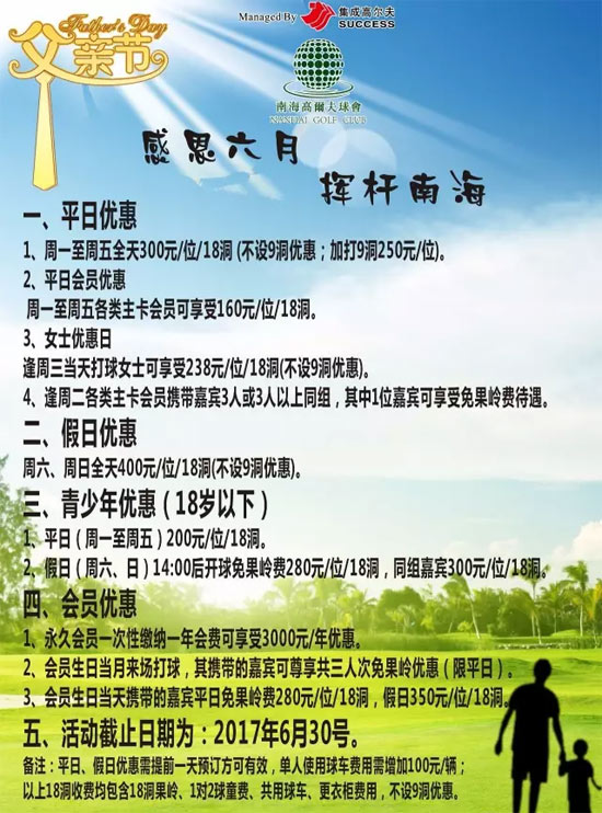 平日300元 佛山南海高尔夫球会感恩六月优惠