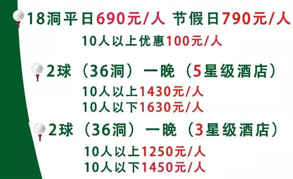 注:单房差100元/人、节假日每18洞为一场,需加100元