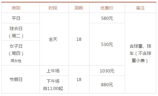 1. 平日开放9洞TeeTime最晚至16:15分。