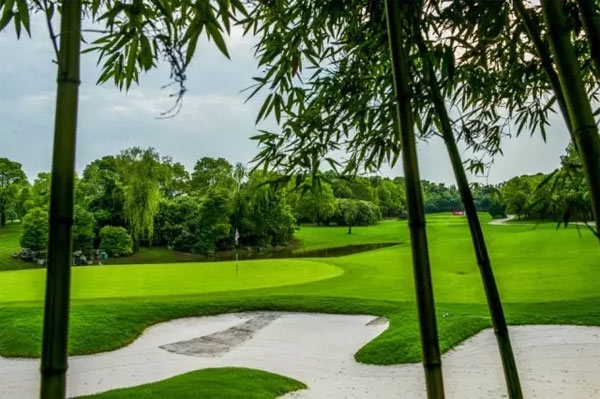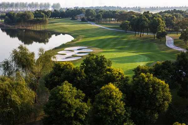 球场上的特色洞,苏州园林式的庭院、拱门、假山、瀑布,使你会陶醉在这美景之中,但正面凶险的水障碍,果岭后方的沙坑却不得不让你立刻心情沉重起来,只有直攻上果岭才是你的最佳选择。