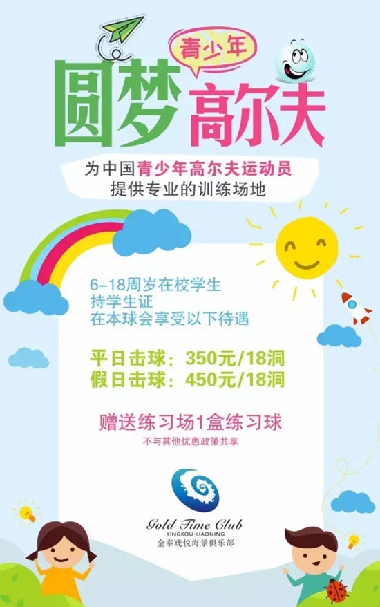 350元/18洞 营口金泰珑悦高尔夫暑期[圆梦青少年]