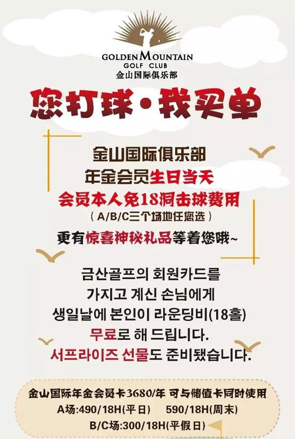 您打球·我买单!烟台金山国际高尔夫生日当天优惠