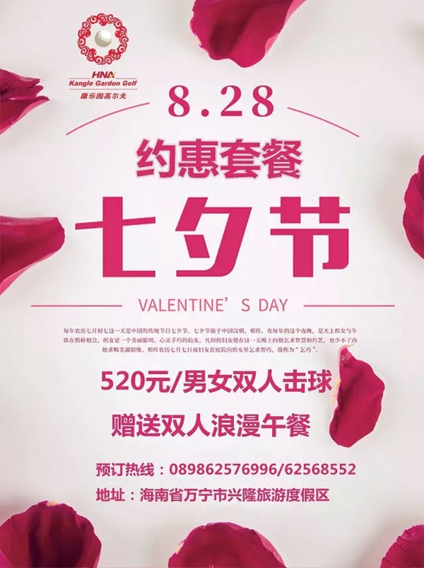 520元/双人 海南康乐园高尔夫浪漫价约惠七夕!
