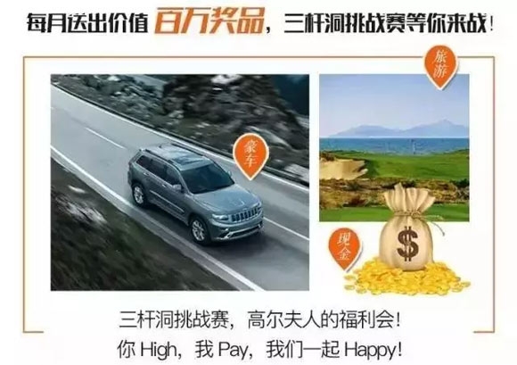 球场指定“三杆挑战洞”专用发球台,在发球前,扫描球童的二维码并支付100/200/