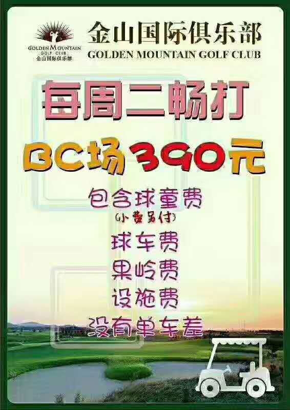 390元/人 烟台金山国际高尔夫每周二畅打BC场