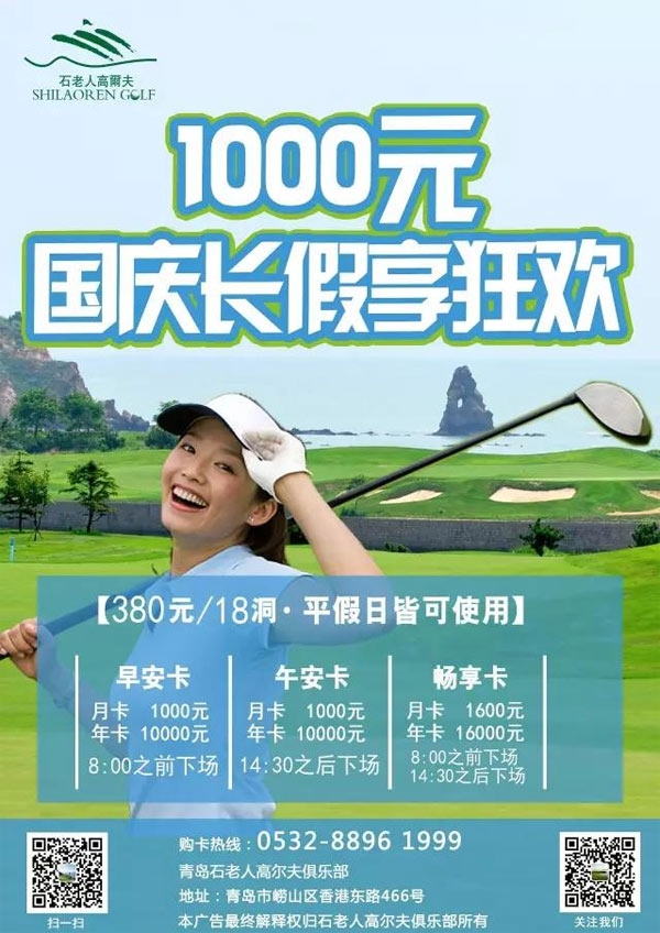 1000元/张 青岛石老人高尔夫国庆长假享狂欢