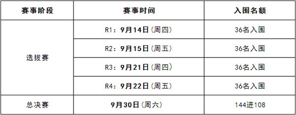 说明:选拔赛任意一场入围者即可获得总决赛参赛资格。