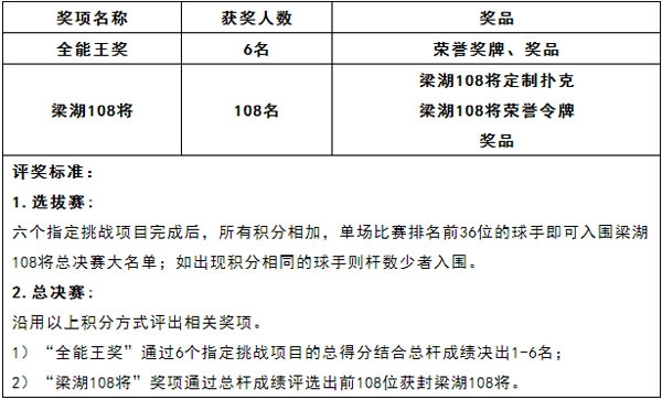 此次比赛参照2016版高尔夫规则结合本地规则进行,将以指定的6个球洞的6项趣味性挑战得分项目结合总杆成绩的方式作为赛制主线和评奖标准。
