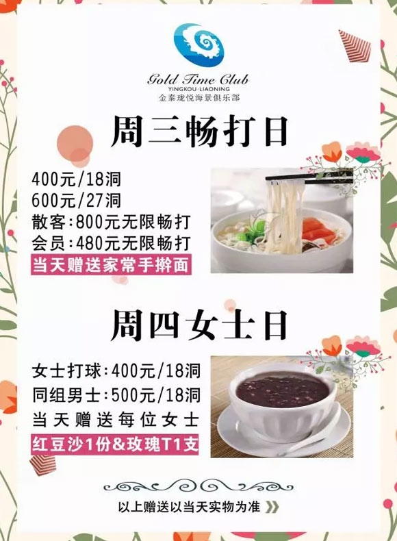 400元/18洞 营口金泰珑悦周三畅打日&周四女士日