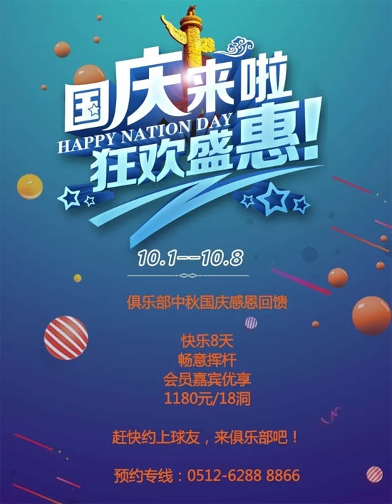 俱乐部双节钜惠、豪礼任性8天!连续8天,您的嘉宾都可优享1180元/18洞(原价1380元)