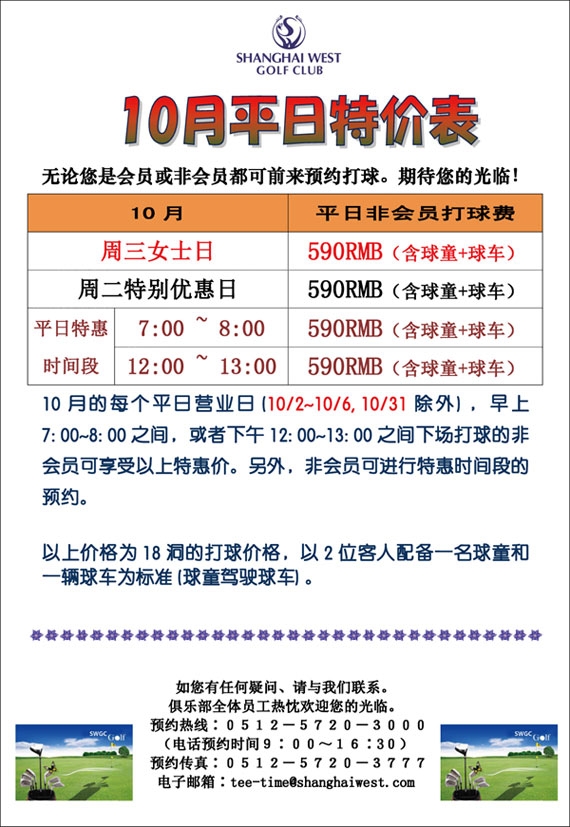590元/人 上海光明高尔夫平日指定时间特惠