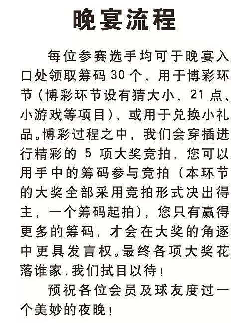7.晚宴中途离开则自动放弃所有已获奖项。