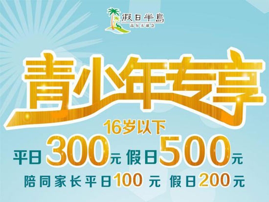 300元/18洞 碧桂园·假日半岛高尔夫青少年专场优惠