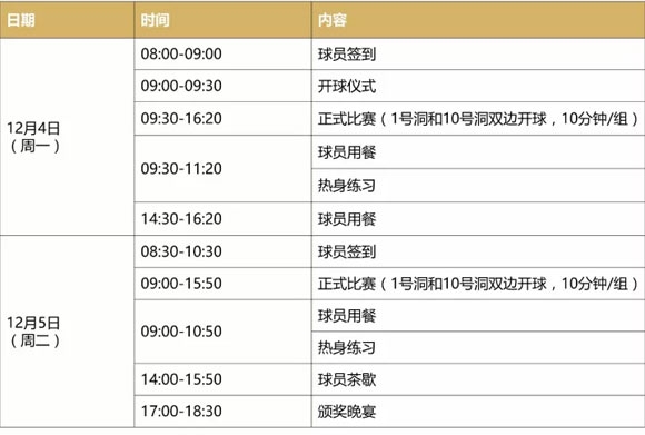 费用包含:2轮正赛击球费及颁奖晚宴餐费