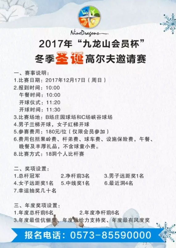 浙江九龙山会员杯冬季圣诞高尔夫邀请赛即将开赛!