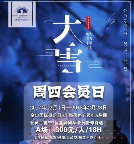 金山国际俱乐部B/C场价格升级打A场+周四会员日即: