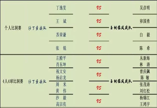 1、参加个人比洞赛、四人四球比洞赛的球员分组由两队队长排兵布阵自行选出