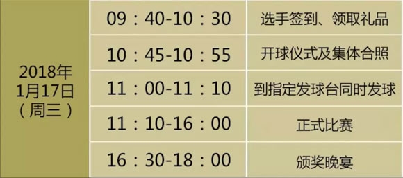 5、所有报名参赛的会员必须准时报到,并在指定的时间发球,如迟到将取消比赛成绩。