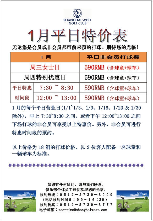 590元/18洞 2018上海光明高尔夫1月平日指定时间特惠