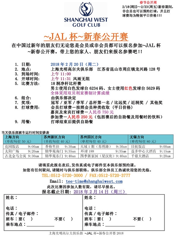 报名-上海光明高尔夫2018春节公开赛2月20日举行