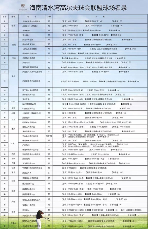 本篇详细汇编了海南清水湾高尔夫球会目前联盟的状况,如有疑问欢迎电询。